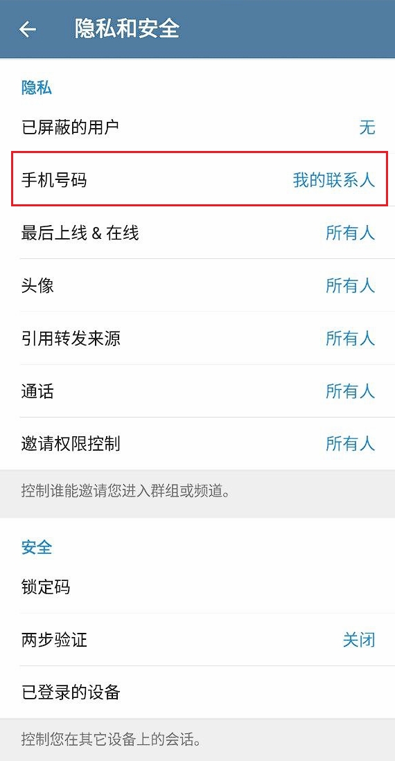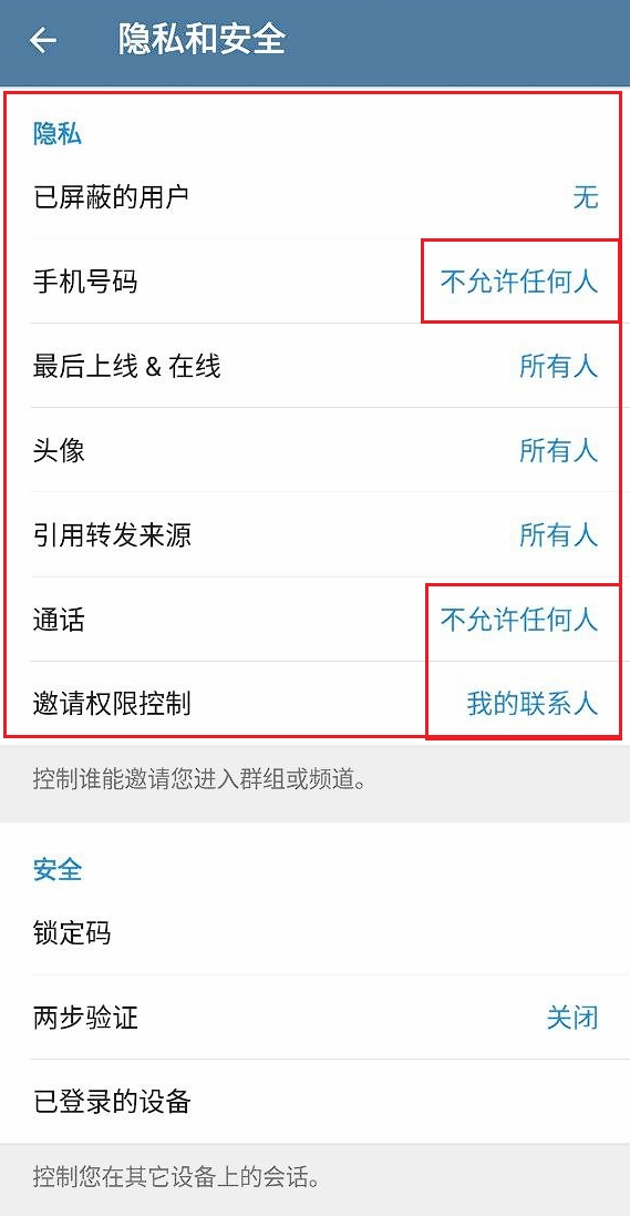 然后将「通话」设置为不允许任何人;「邀请权限控制」设置为我的联系人。