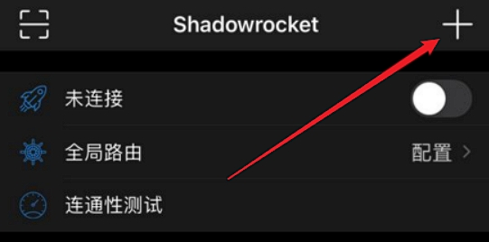 然后打开 Shadowrocket 首页,点击右上角的加号。