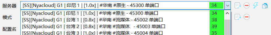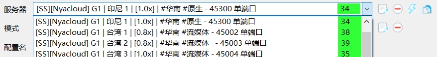 在节点列表中选择一个节点,节点后面的数字为延迟
