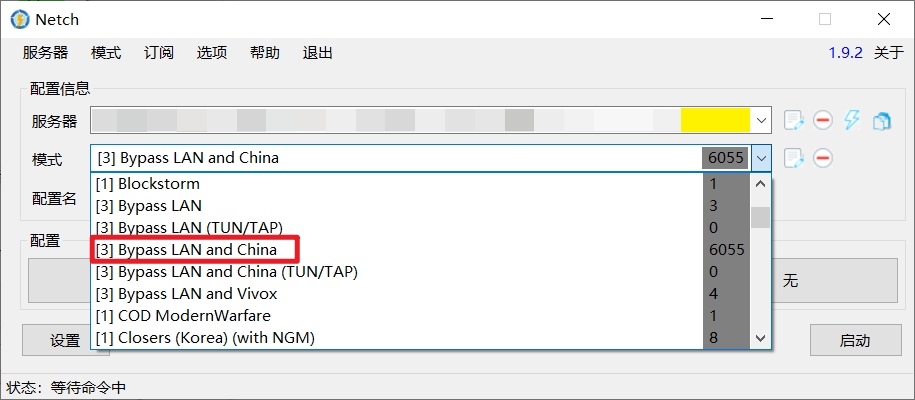 选择自己需要的代理模式。这里推荐 [3] Bypass LAN and China 即 绕过局域网和中国大陆 模式,此模式下可以进行自动分流,不影响国内服务速度。